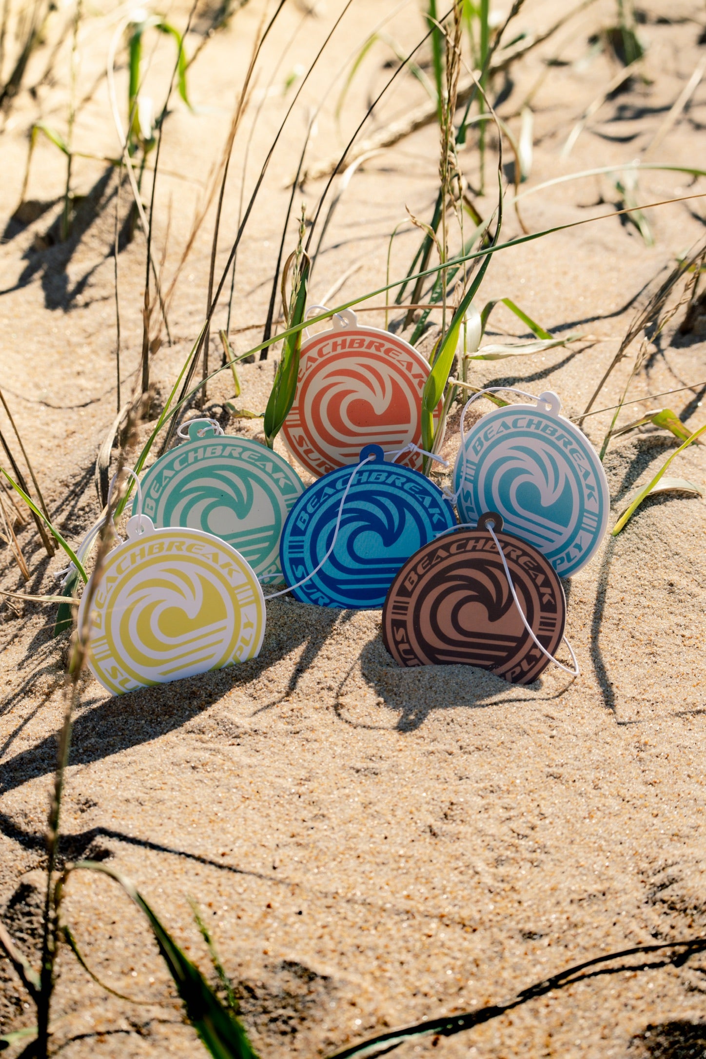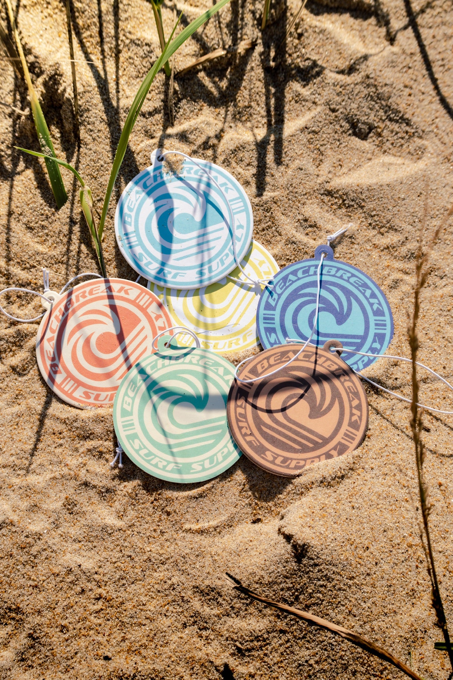 Each air freshener is crafted with long lasting scent oils and printed in our signature BeachBreak logo designs.